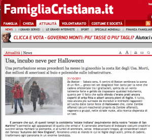 Usa, incubo neve per Halloween (Famiglia Cristiana)