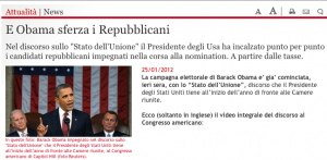La campagna elettorale di Barack Obama e’ gia’ cominciata, ieri sera, con lo “Stato dell’Unione”, discorso che il Presidente degli Stati Uniti tiene all’inizio dell’anno di fronte alle Camere riunite.