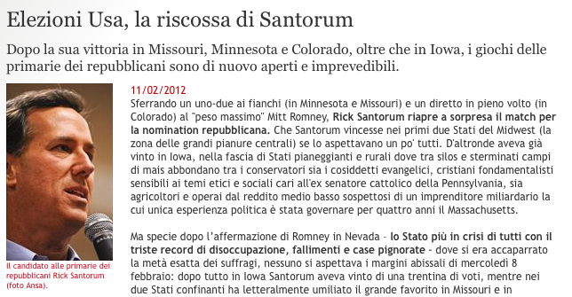 Santorum alla Riscossa (Famiglia Cristiana, WEB)