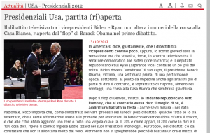 Il dibattito televisivo tra i vicepresidenti Biden e Ryan non altera i numeri della corsa alla Casa Bianca, riaperta dal “flop” di Barack Obama nel primo dibattito.